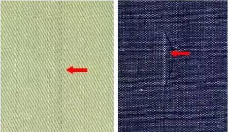 經(jīng)向疵點:布面上由經(jīng)紗形成或沿經(jīng)紗方向形成的疵點。如缺經(jīng)、斷經(jīng)、粗經(jīng)、筘痕、雙經(jīng)、穿錯、吊經(jīng)、松經(jīng)等?!?/p>